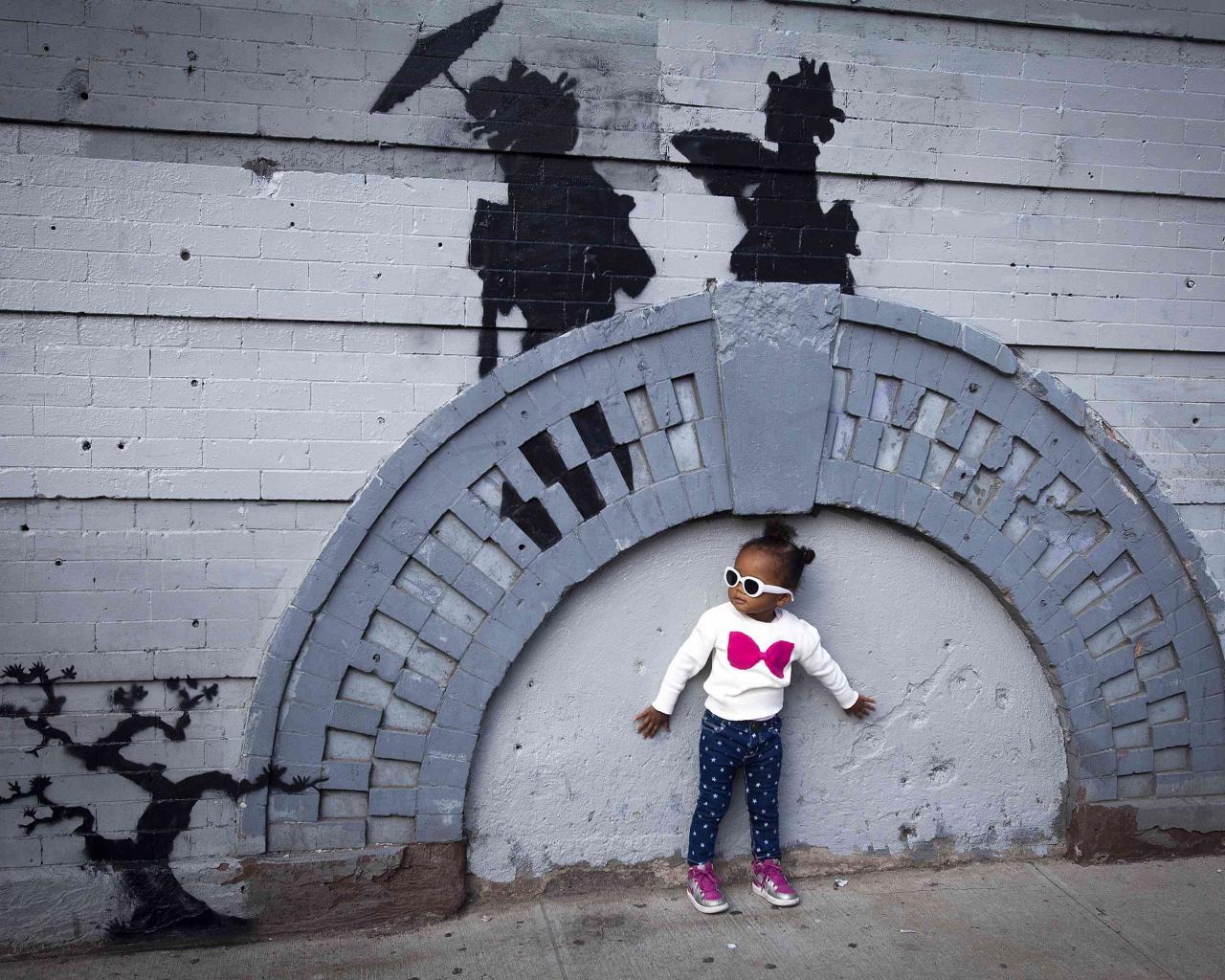 Wallpaper Graffiti, the military and the girl, the artist Banksy