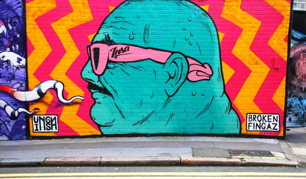 » Wallpaper Graffiti, blue man in pink glasses