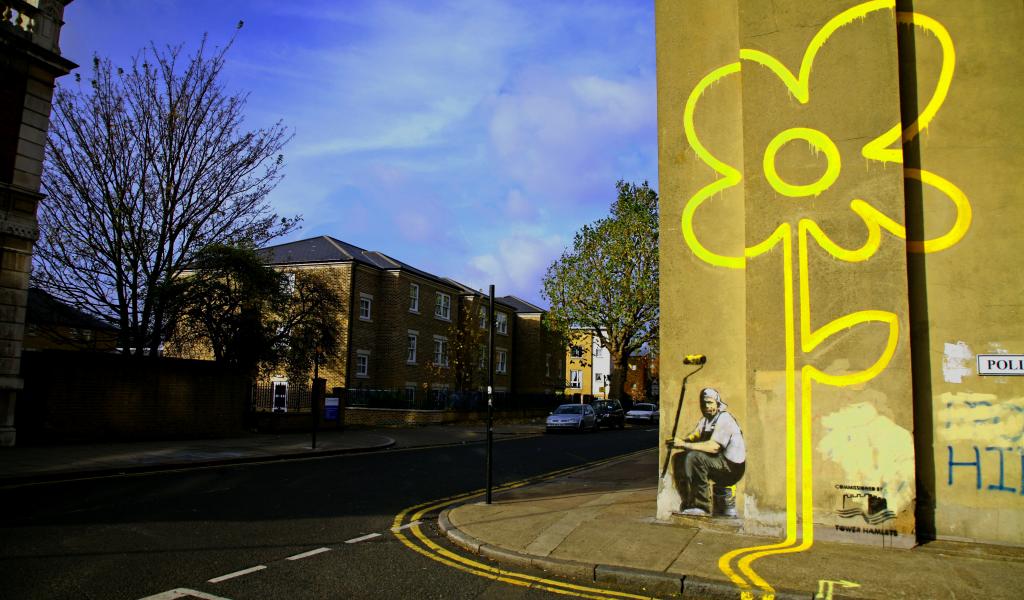 Wallpaper Graffiti with prisoner, the artist Banksy