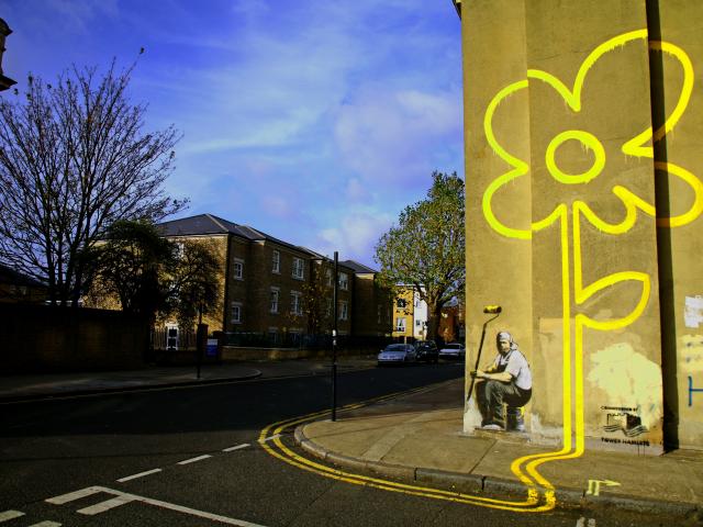 Wallpaper Graffiti with prisoner, the artist Banksy