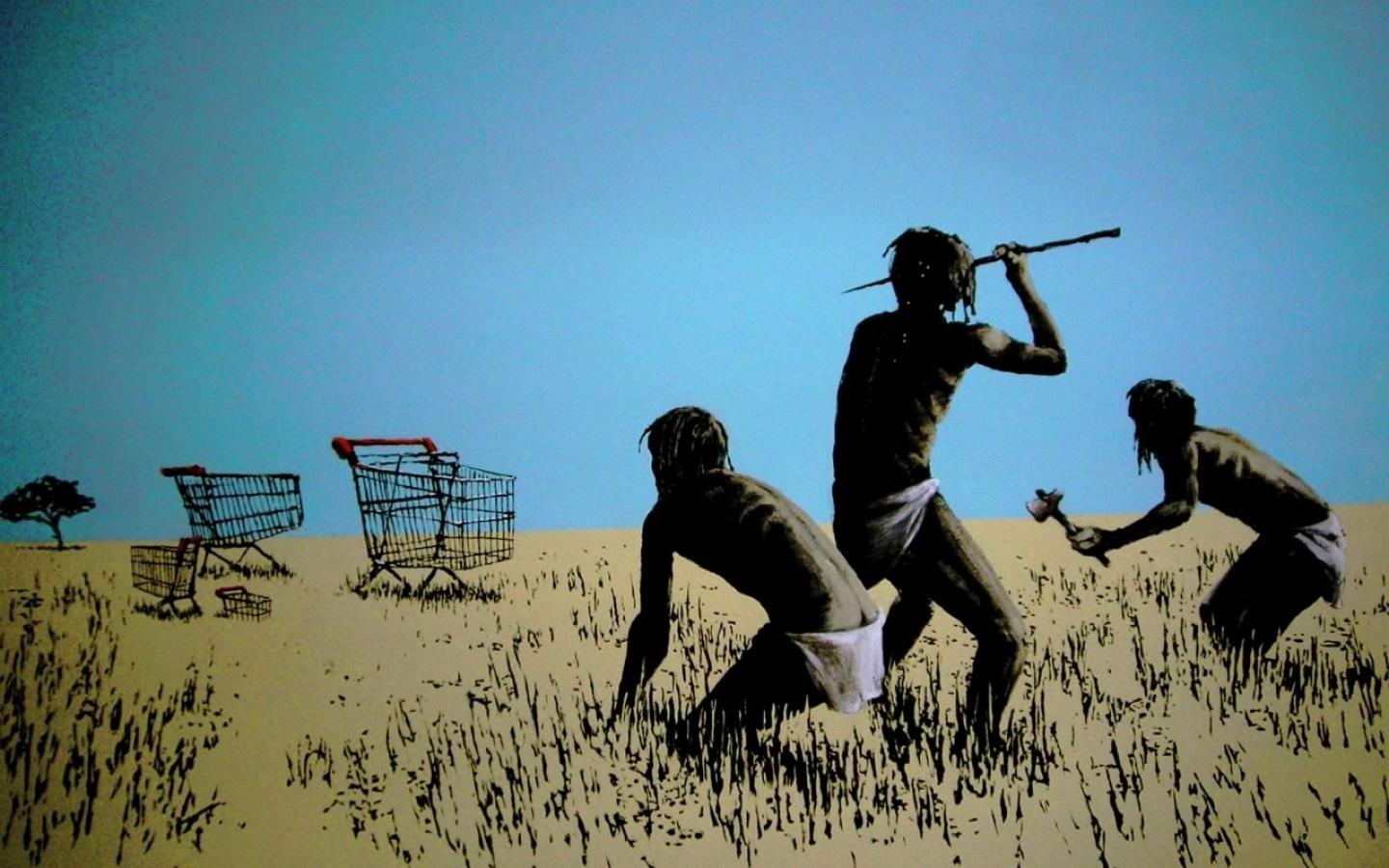Wallpaper Graffiti, ancient people and Shopping carts, Banksy