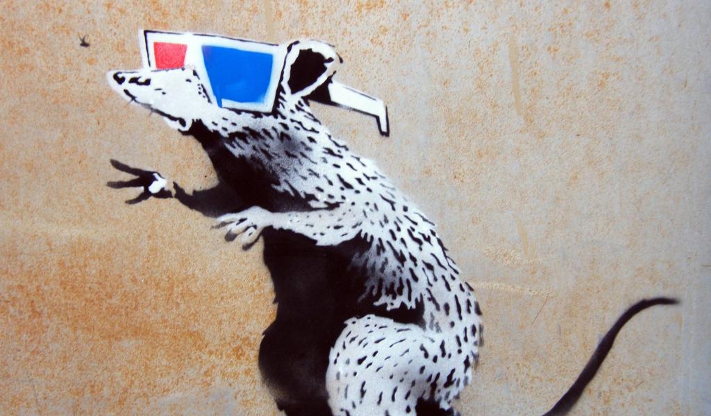 Wallpaper Graffiti, rat wearing glasses, the artist Banksy
