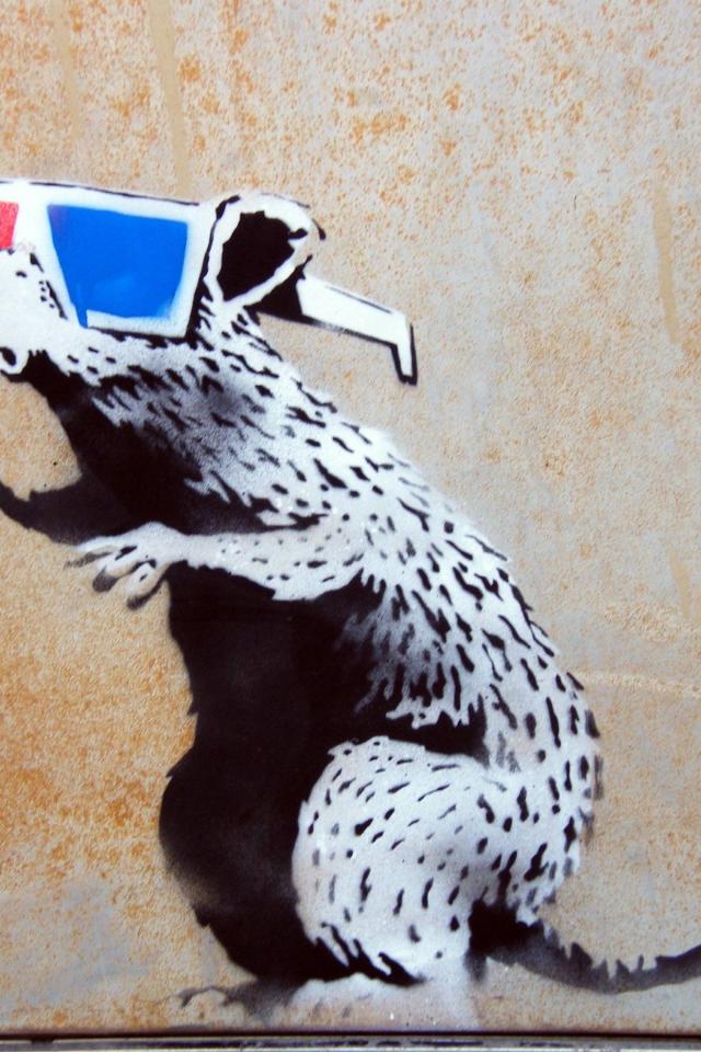 Wallpaper Graffiti, rat wearing glasses, the artist Banksy