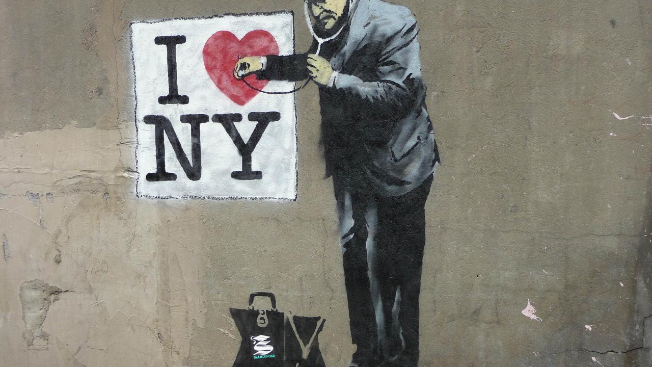 Wallpaper Graffiti Banksy loves New York