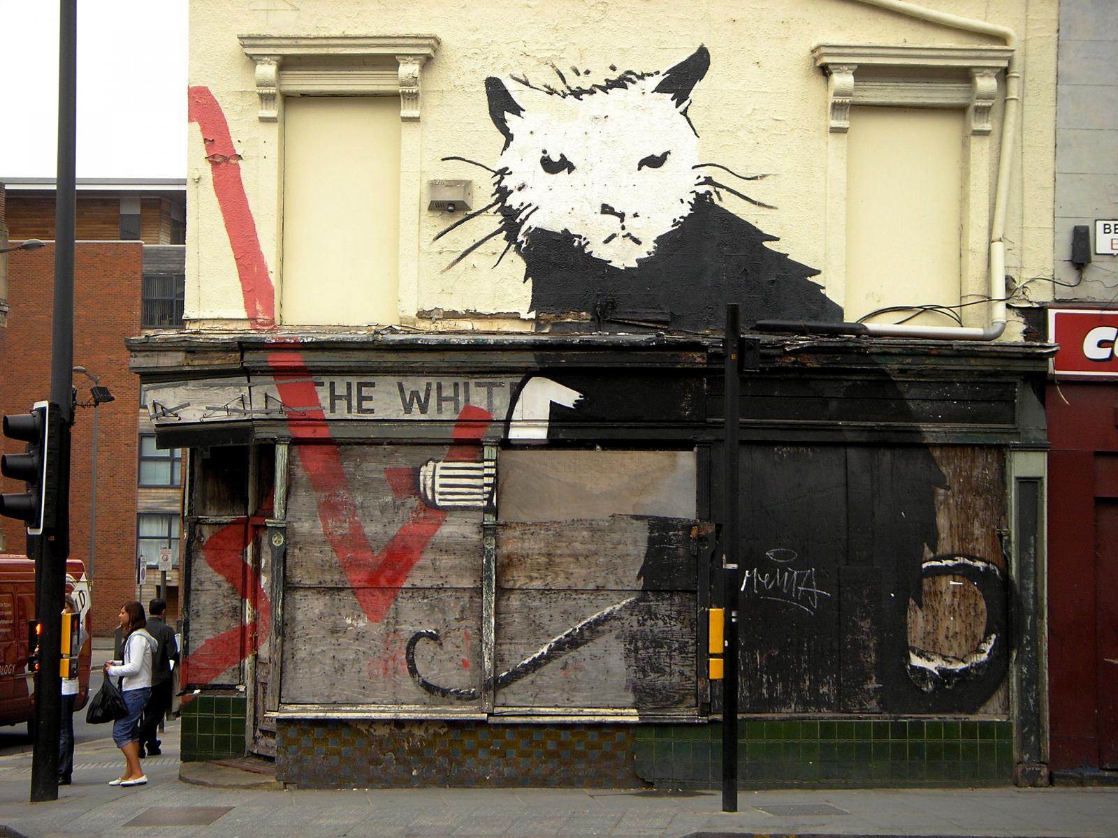 Wallpaper Graffiti on the building, the artist Banksy
