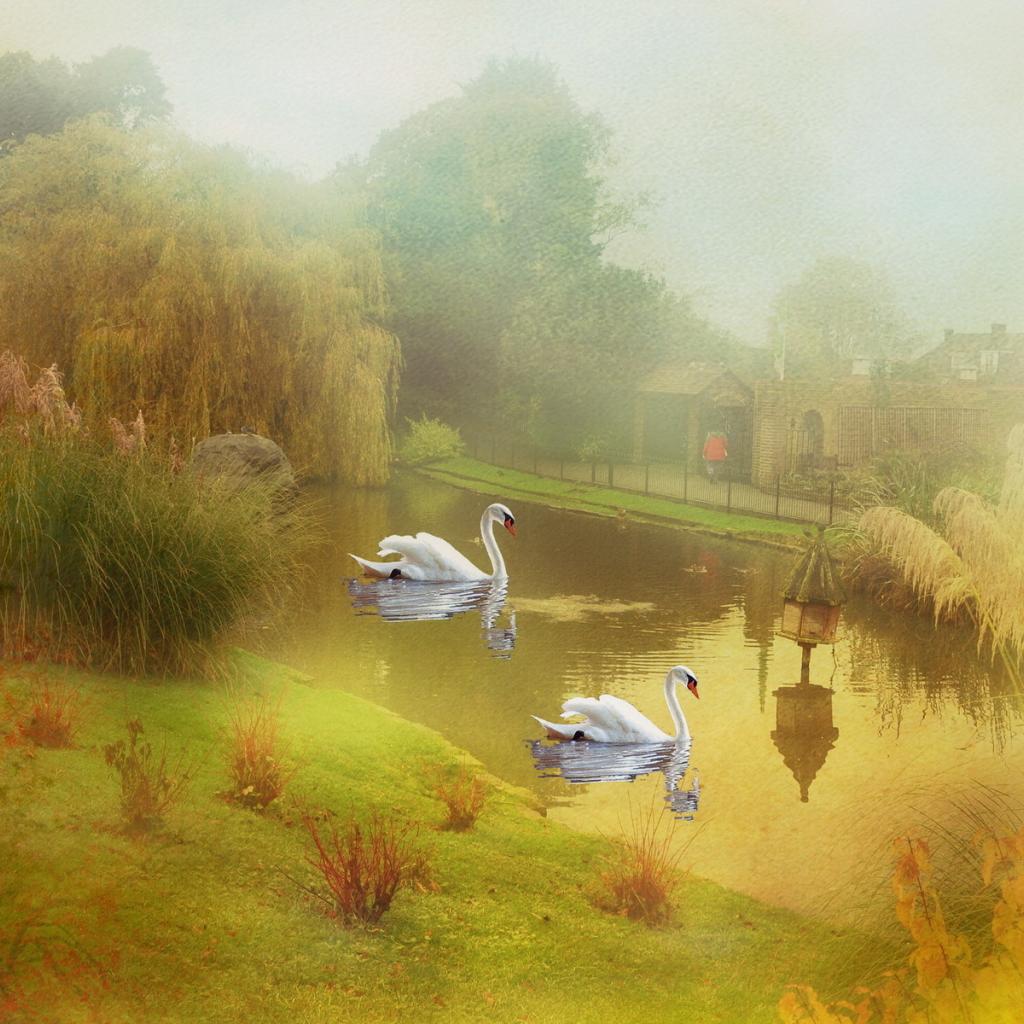 Wallpaper Pond with swans