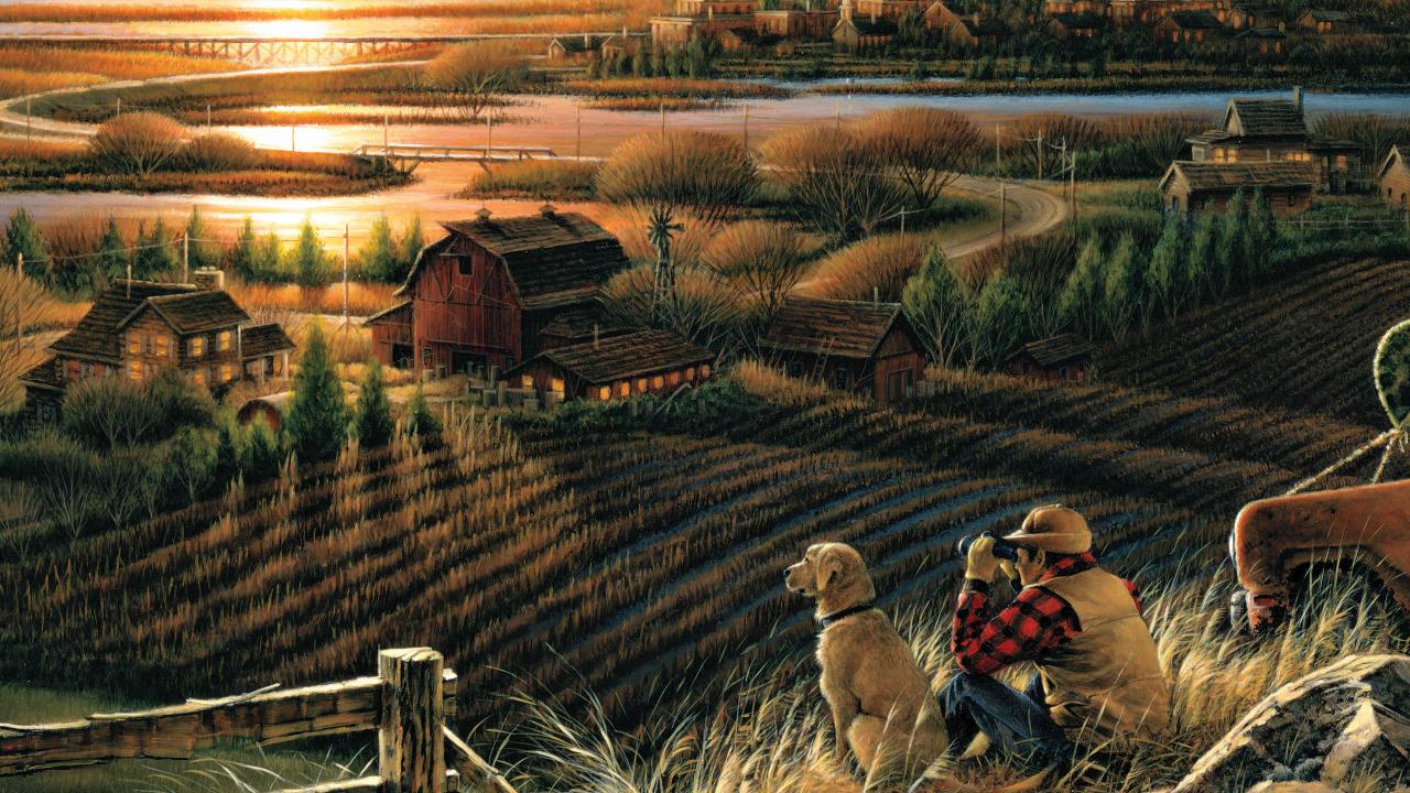 Wallpaper Man watching the sunset