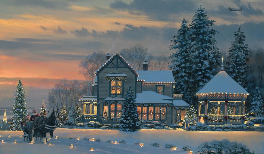 Wallpaper Gift, Red ribbon, A glass of champagne, Balls, Candles , Christmas tree, Santa Claus, Christmas toys, Christmas garland