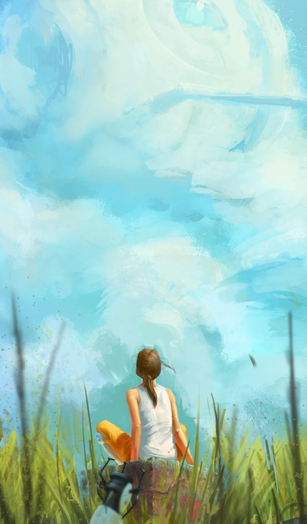 Wallpaper The girl looks at the clouds