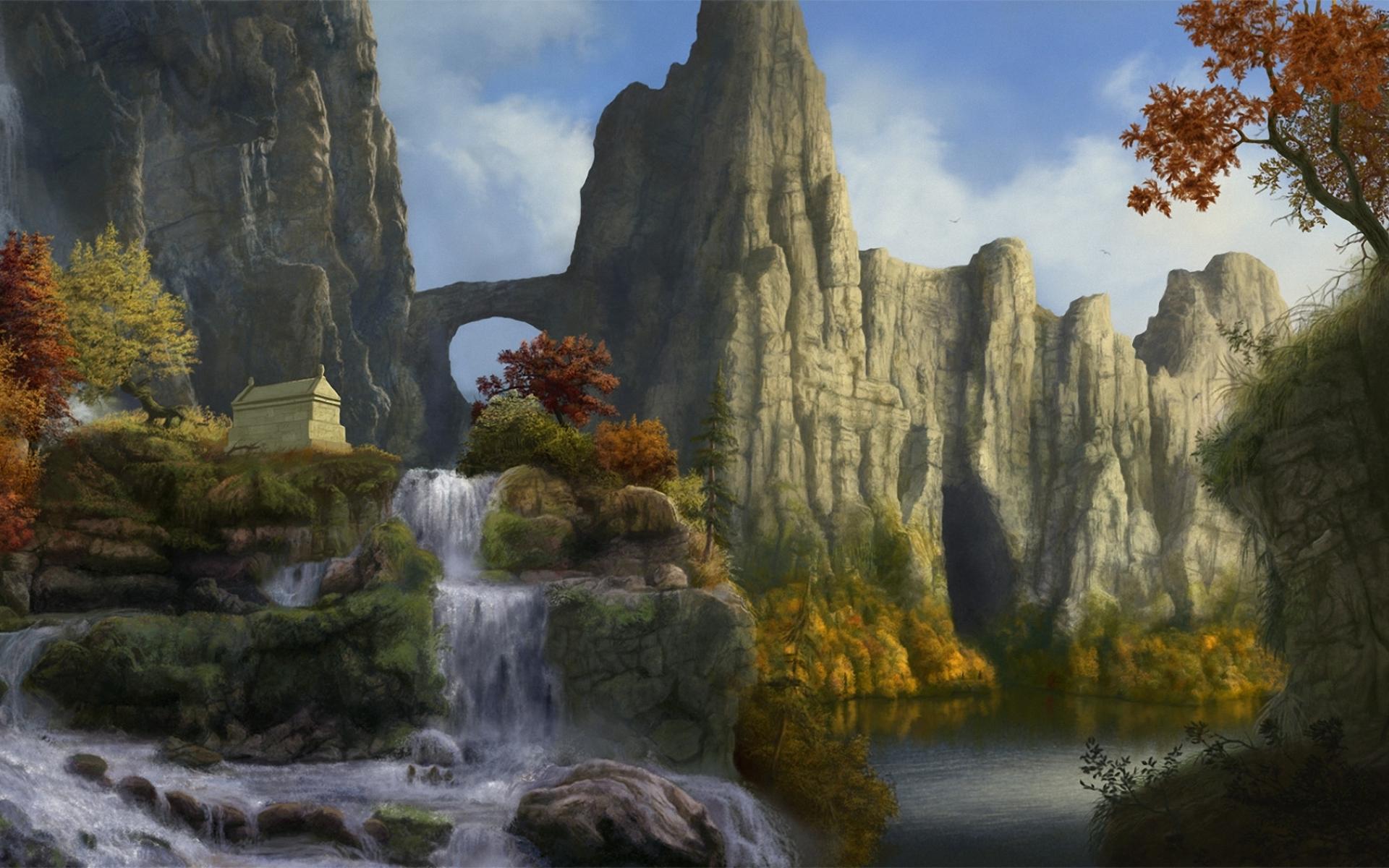Wallpaper Mountain landscape with waterfall