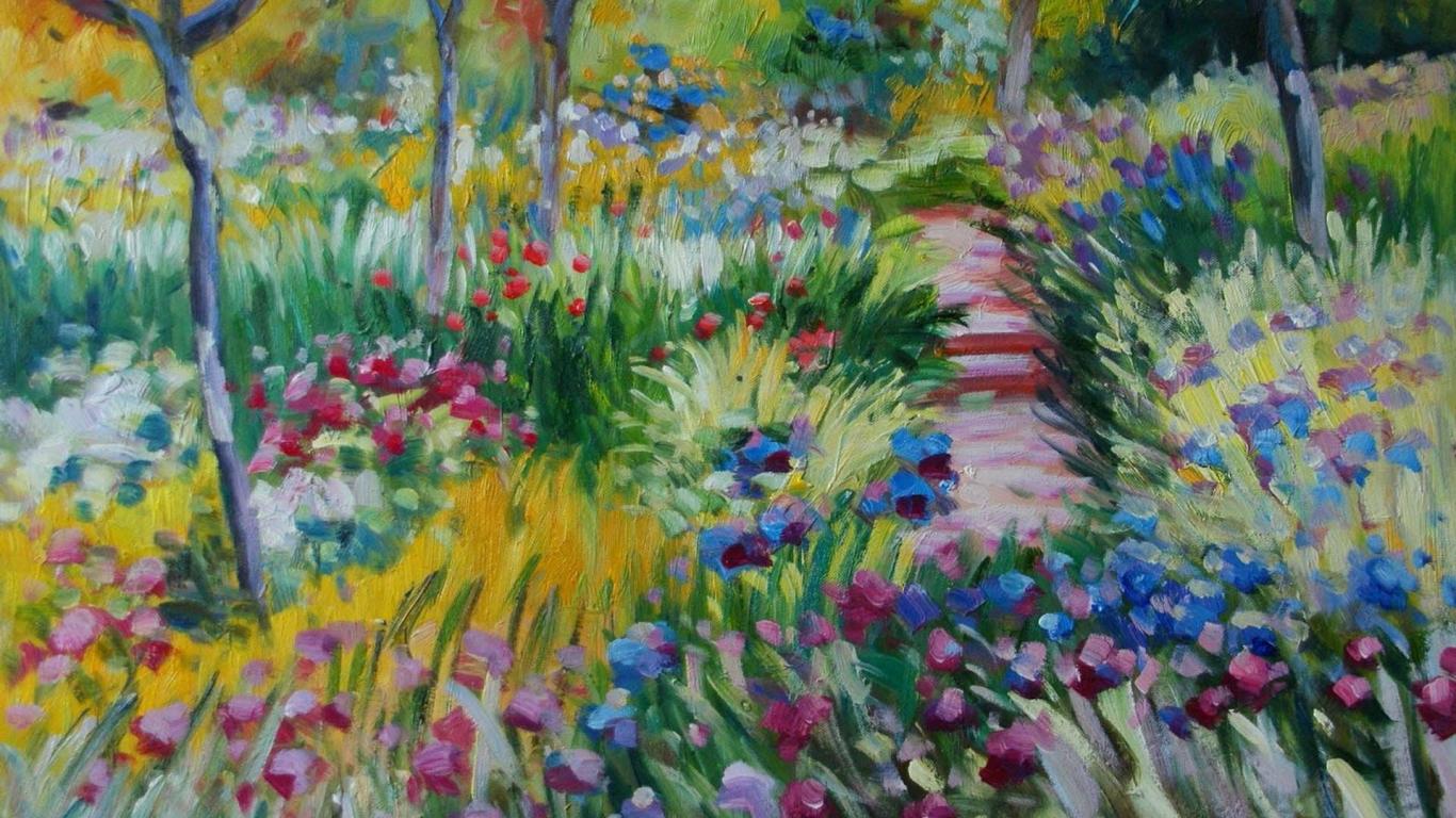 Wallpaper Painting Claude Monet - Field of flowers