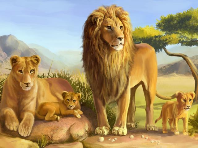» Wallpaper Trees, Lion, Vulture