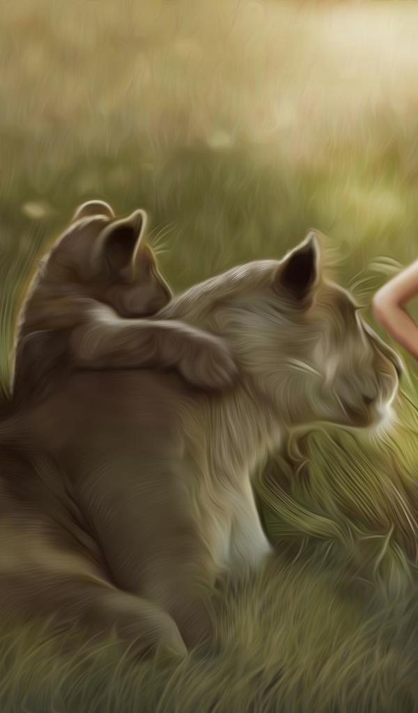 » Wallpaper Lion, Child, Grass