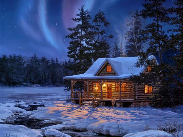 Wallpaper Snow, Trees, Snow-capped mountains, Mountain lake, Relax