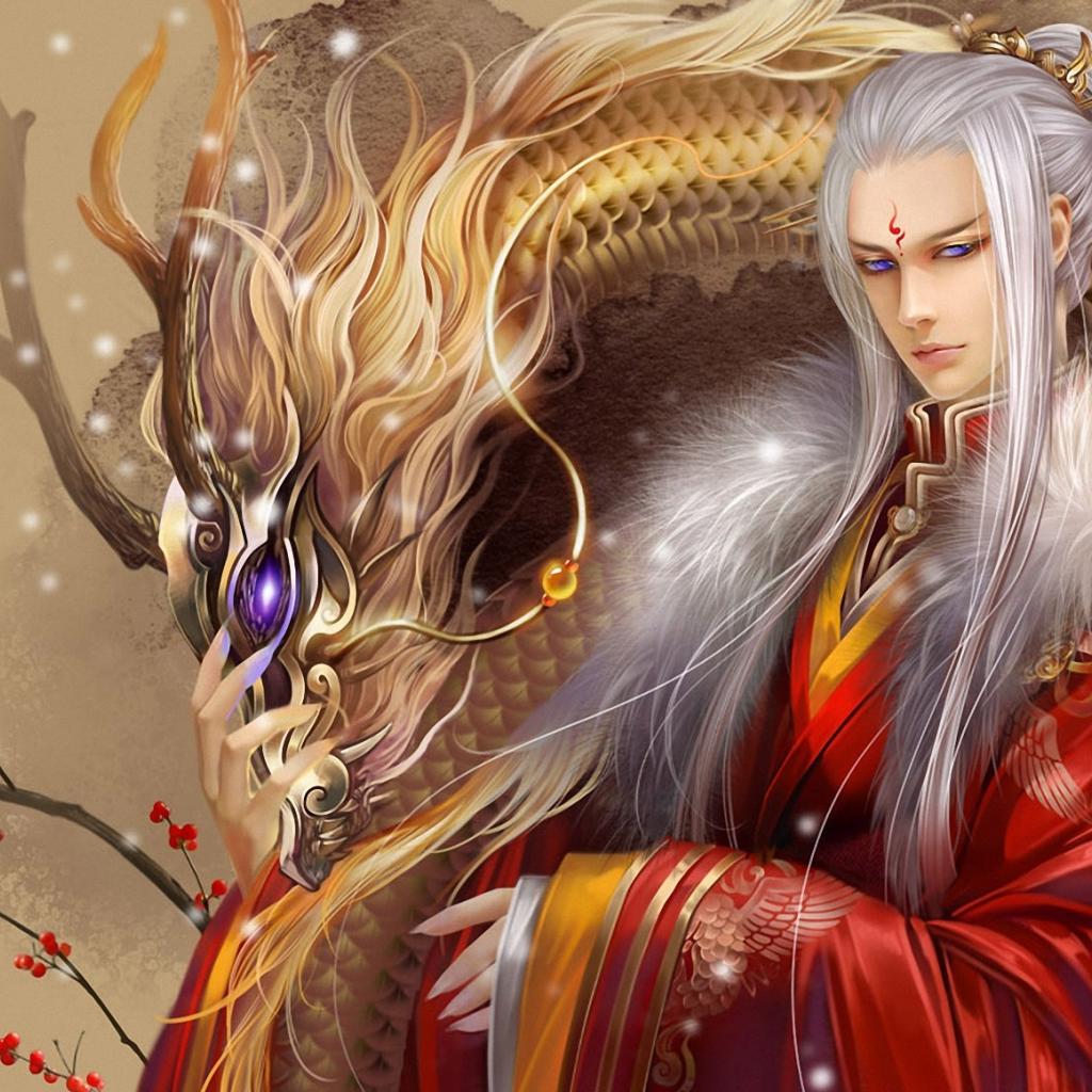 Wallpaper Trees, Guy, Long hair, Dragons