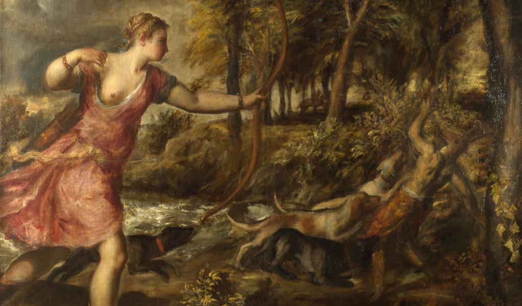 Wallpaper Painting Huntress and satyr