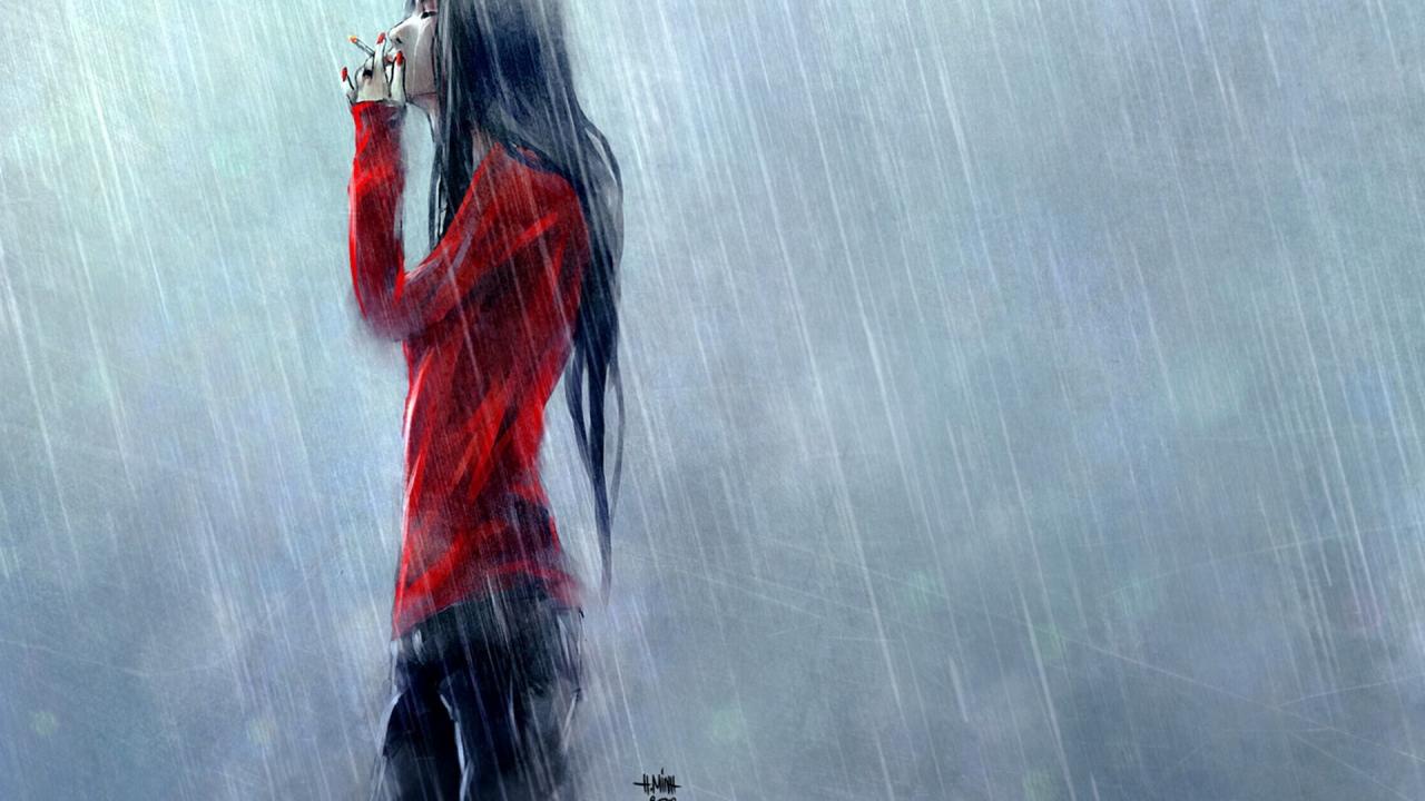 Wallpaper Brunette in the rain, the artist NanFe