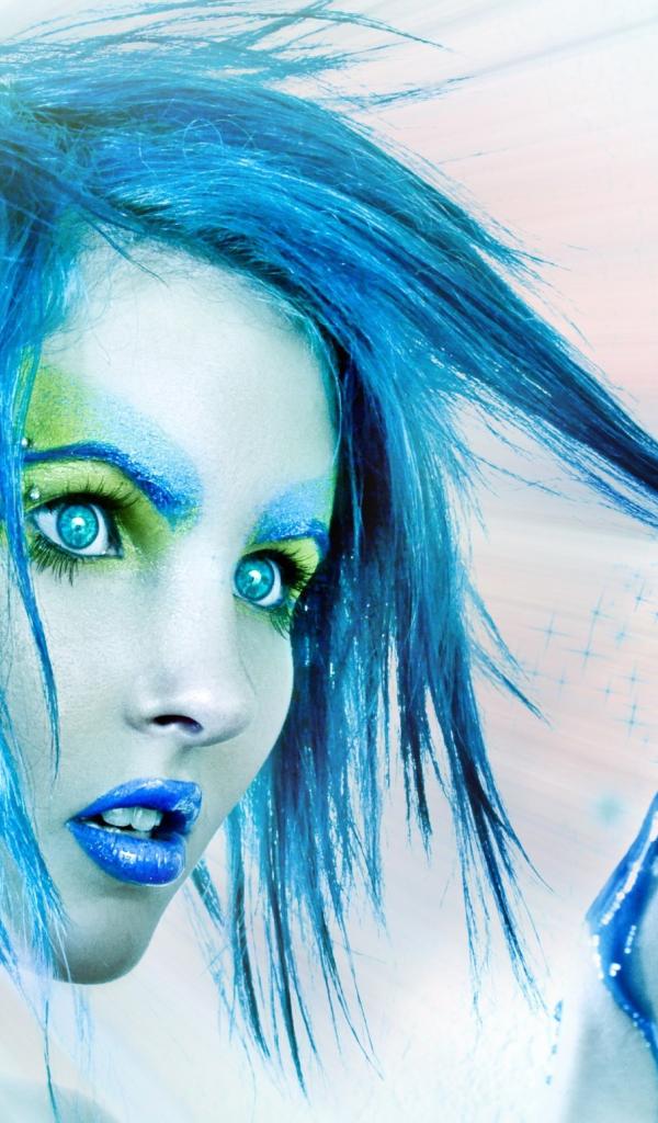 Wallpaper Blue-haired girl looks at the crystal