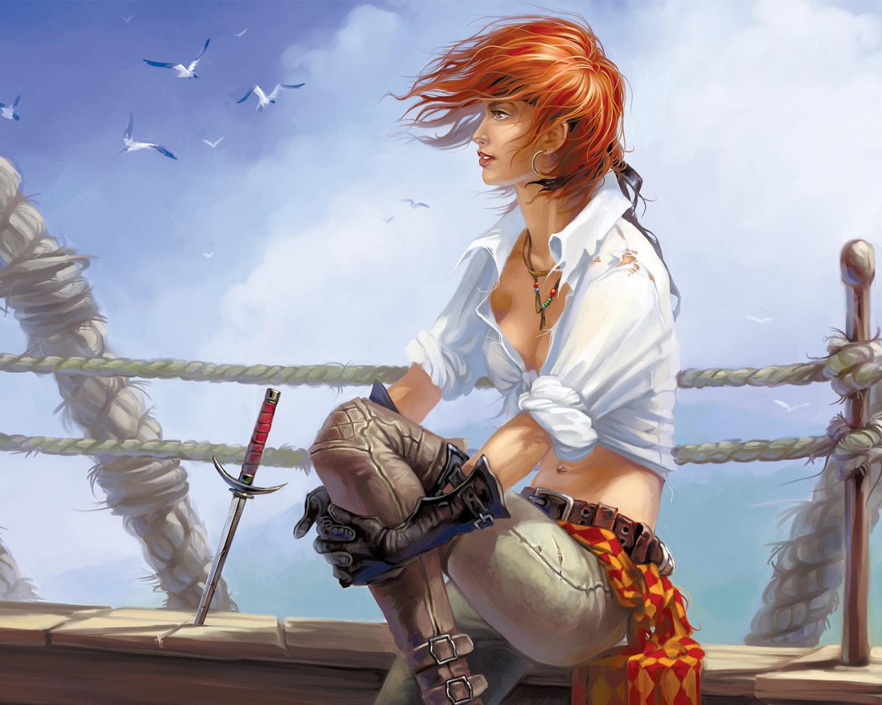 » Wallpaper The girl on the boat