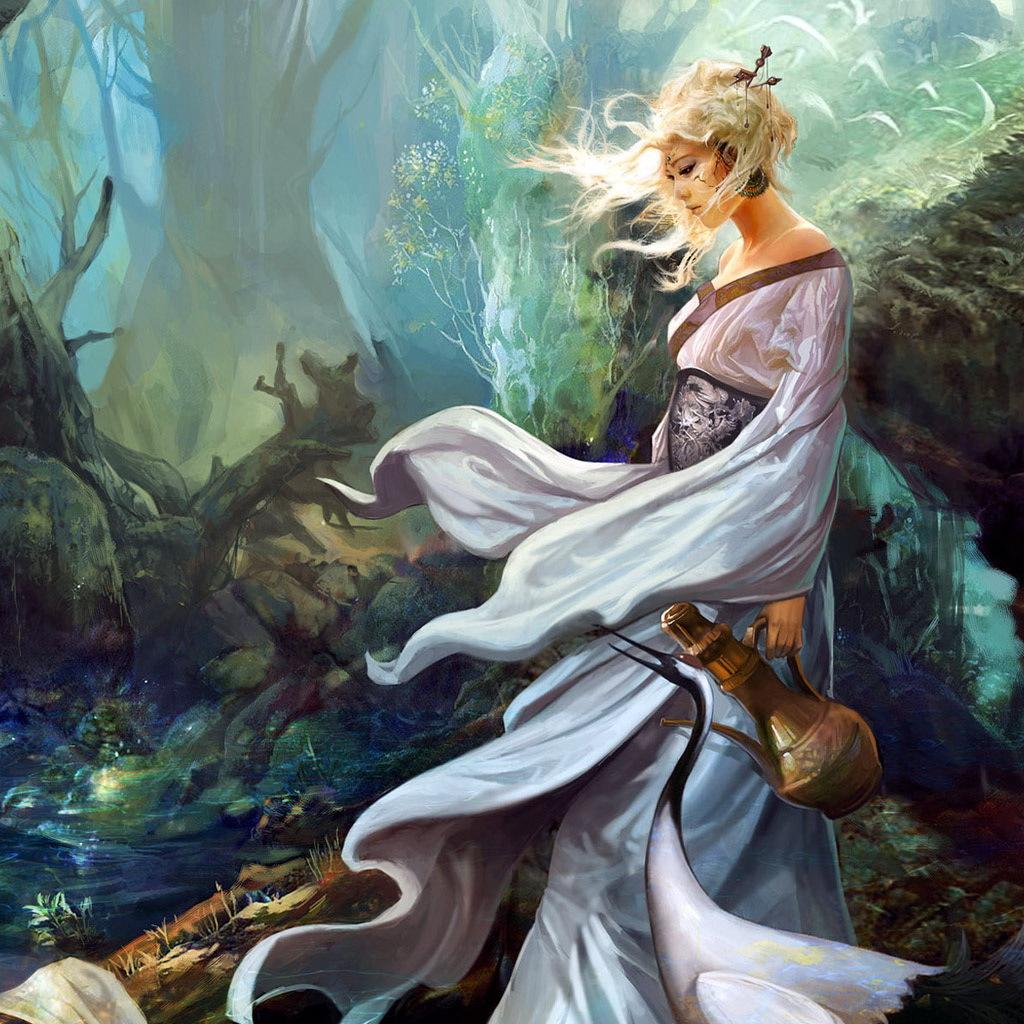 » Wallpaper The girl with the pitcher in the forest