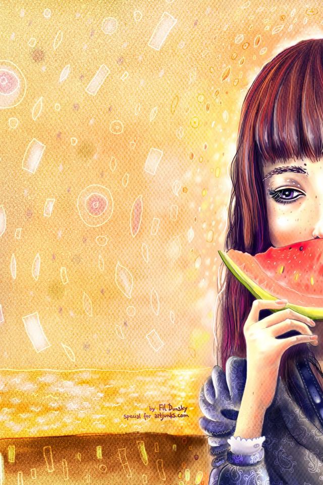 Wallpaper Girl eating watermelon