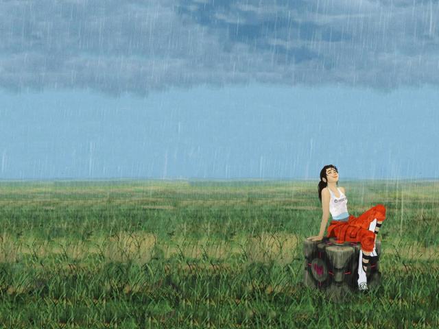 Wallpaper Girl in the rain on the field