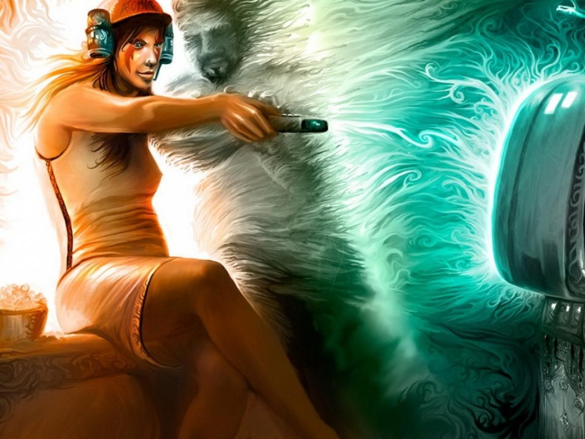 Wallpaper Girl with her toys, anime girl fairy Madoka