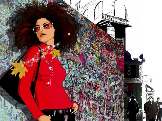 Wallpaper The girl looks at the city at night, anime girl fairy Madoka