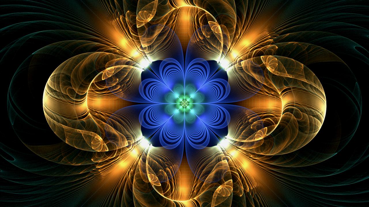 Обои Желто голубой абстрактный фрактальный цветок