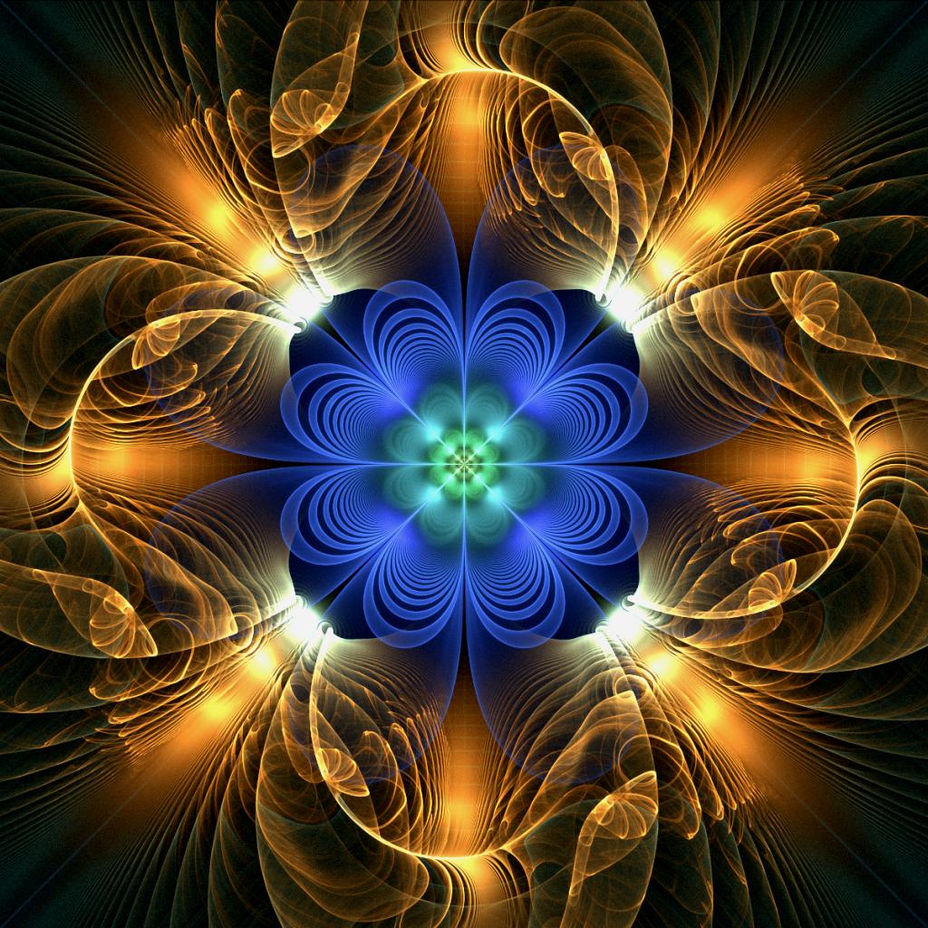 Обои Желто голубой абстрактный фрактальный цветок