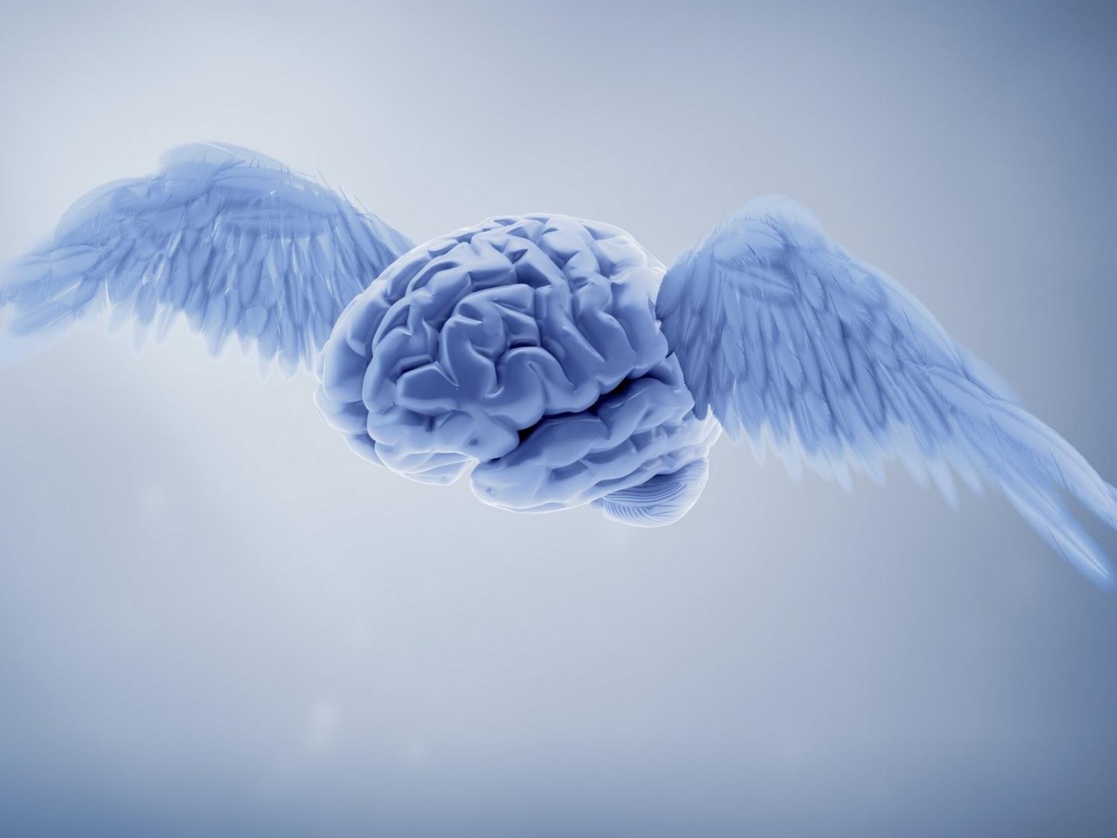 Обои Мозг с крыльями на сером фоне 3д графика