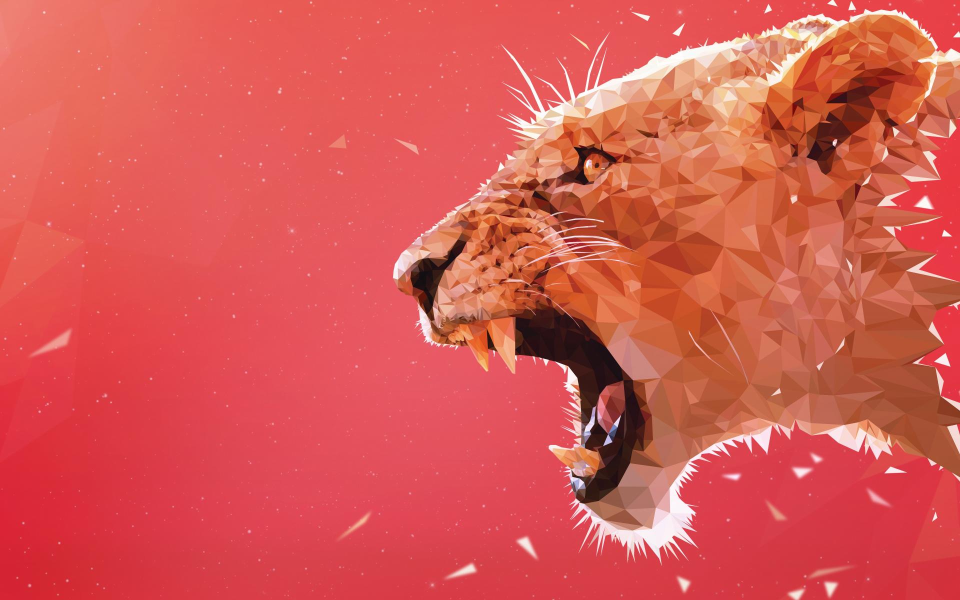 Обои Хищная львица на розовом фоне 3д графика