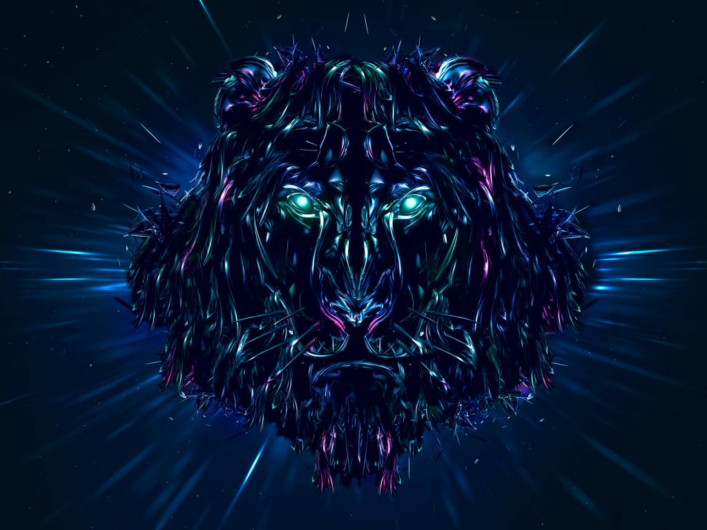 Обои Неоновый лев 3д графика