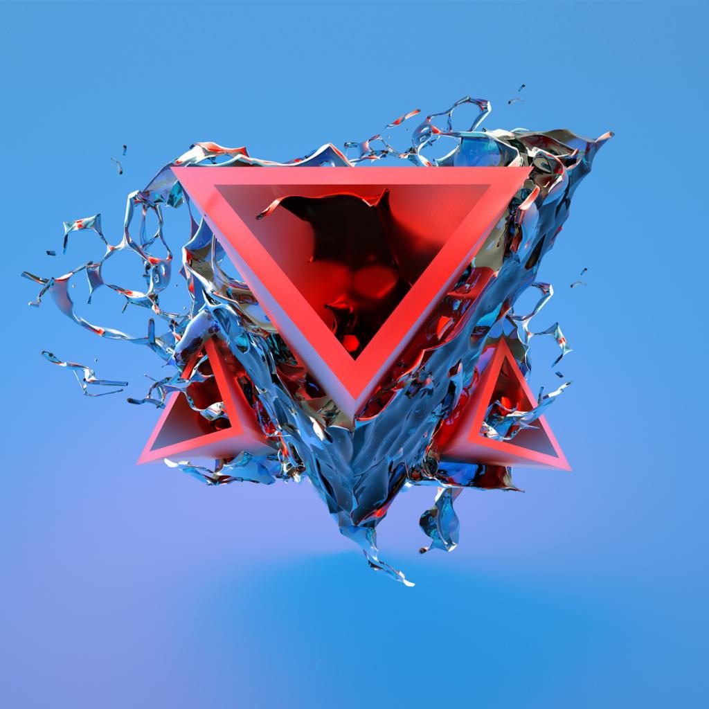 Обои Треугольник разрушается на части на голубом фоне