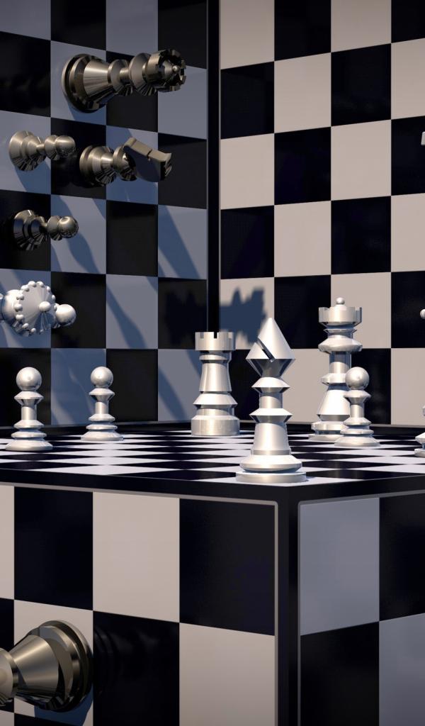 Обои Шахматы на черно-белой шахматной доске 3д графика