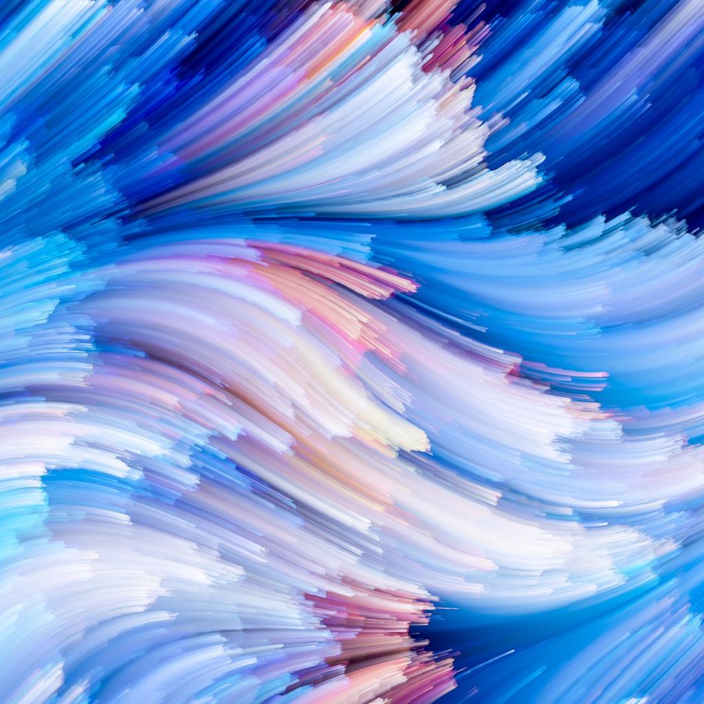 Обои Вертикальные голубые, оранжевые и зеленые абстрактные волны