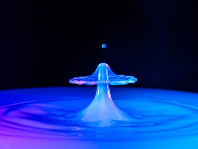 Обои Неоновая капля в воде на черном фоне, 3д графика