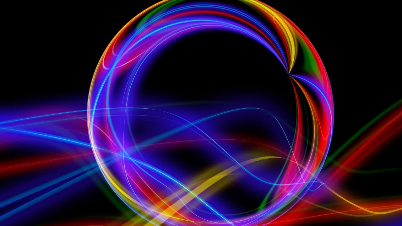 Обои Разноцветная абстрактная сфера с волнами на черном фоне