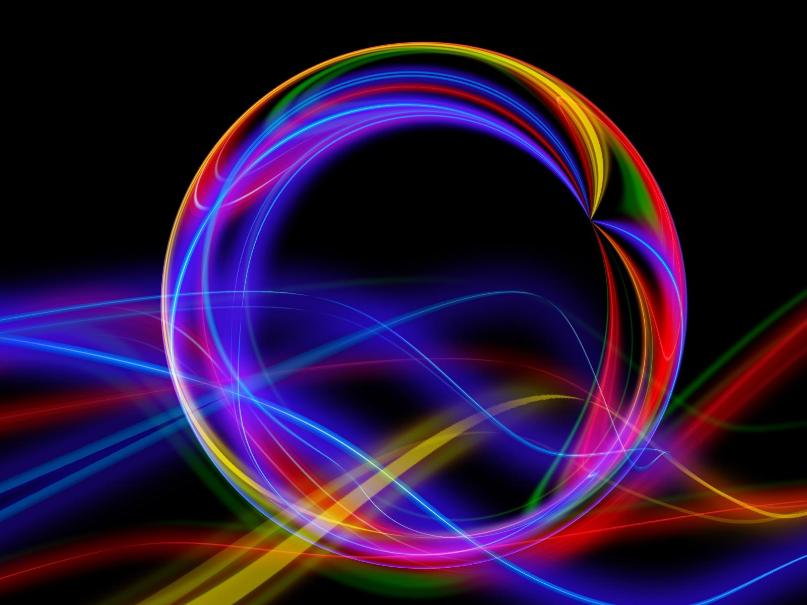 Обои Разноцветная абстрактная сфера с волнами на черном фоне