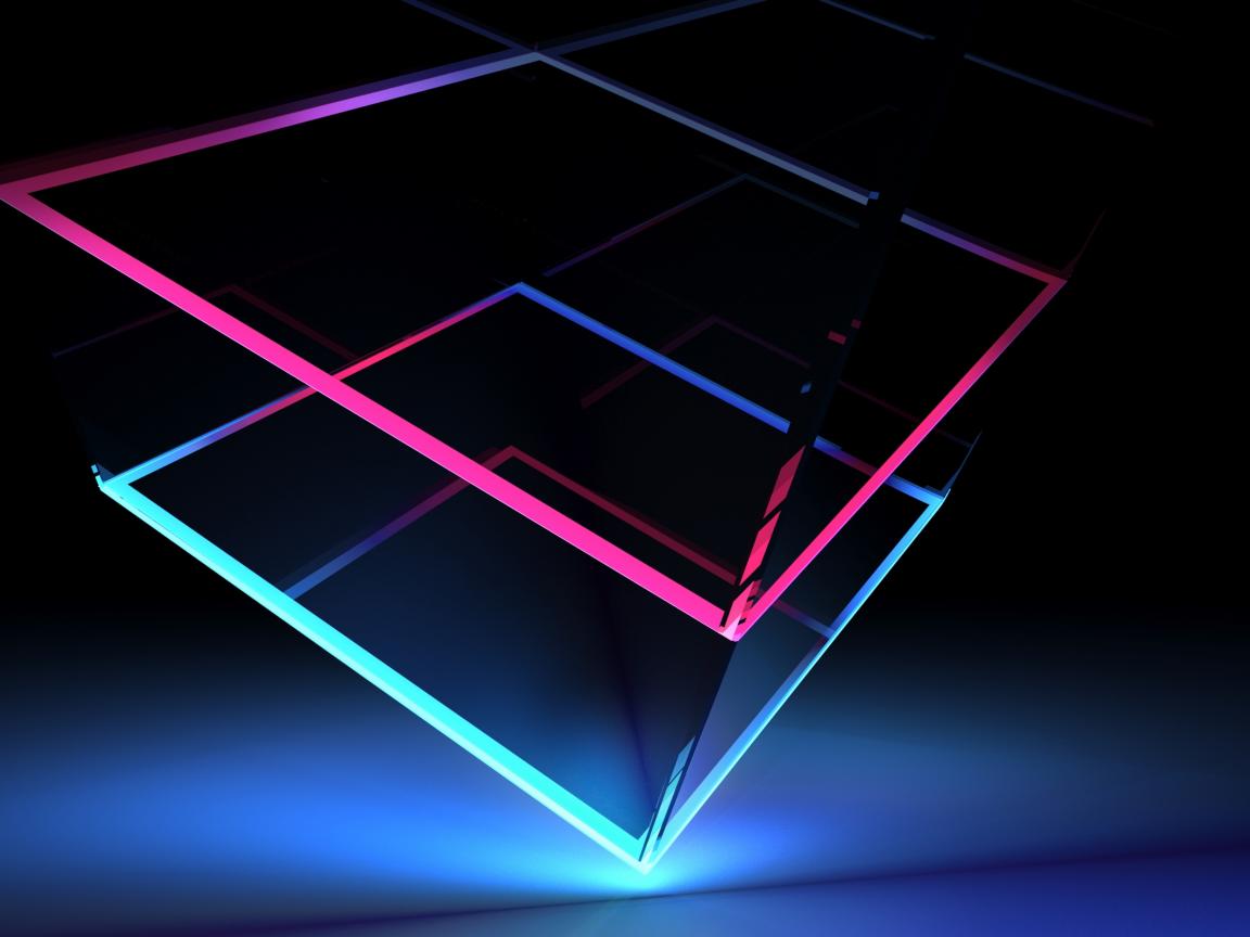 Обои Неоновые квадраты на черном фоне