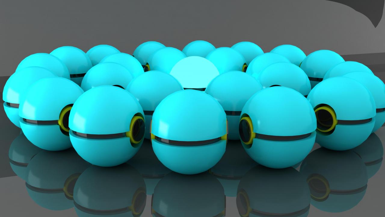 Обои Много голубых шаров отражаются в сером поверхности