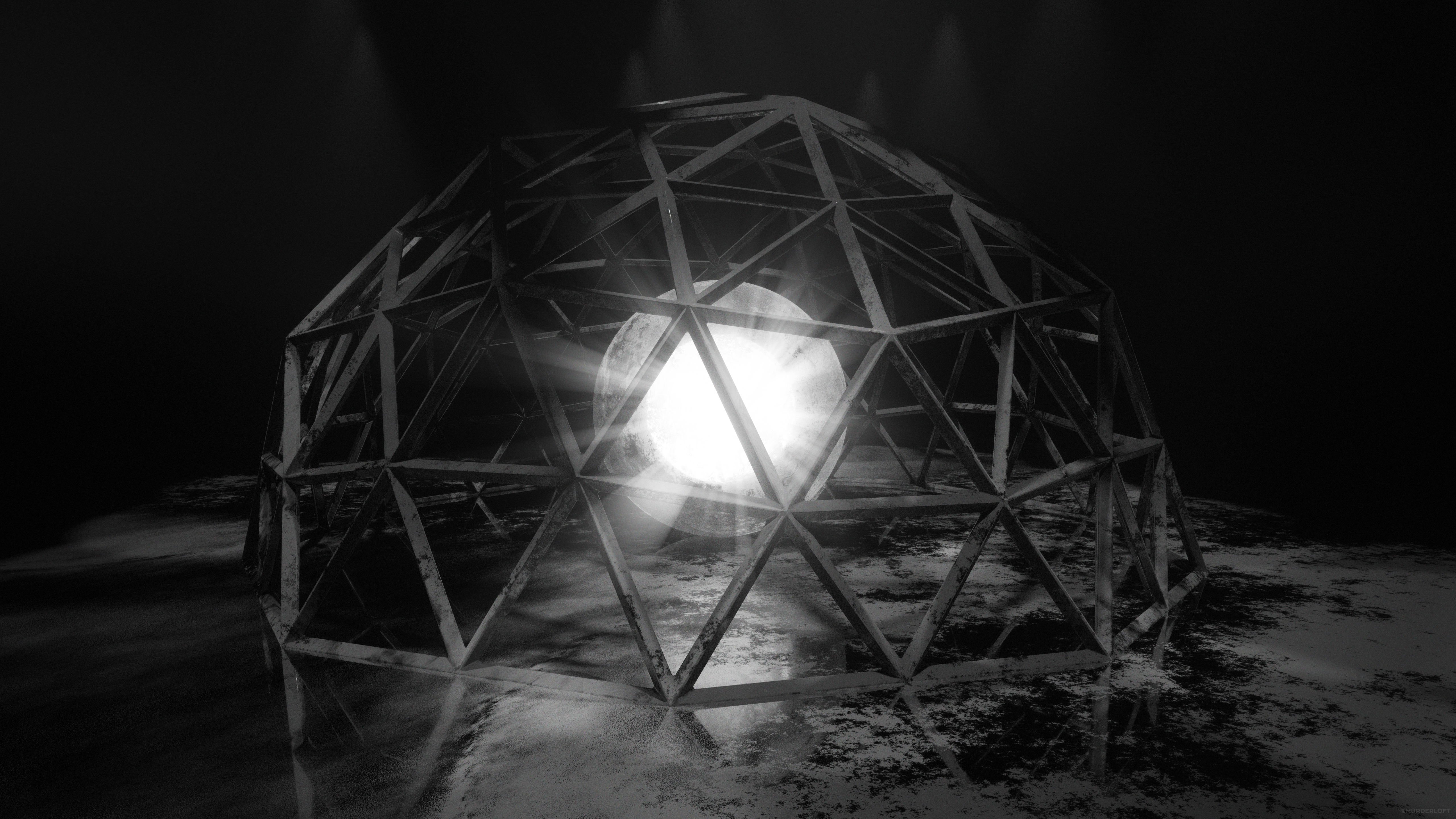 Обои Белый яркий шар под железной клеткой