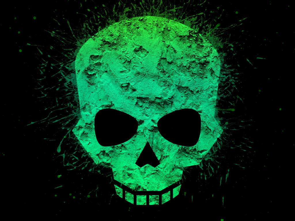Обои Зеленый череп на черном фоне