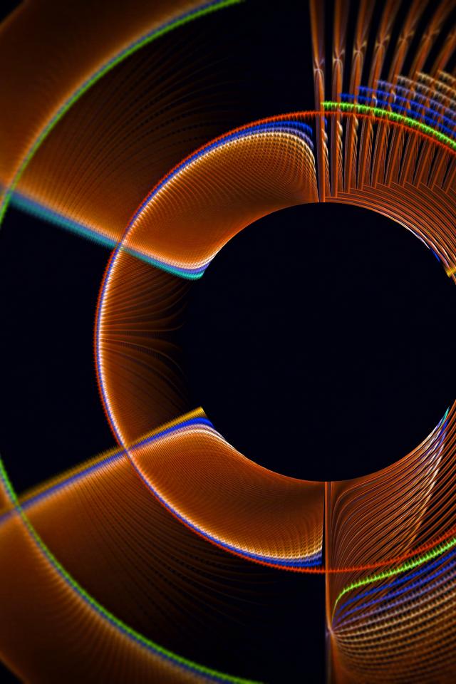 Обои Коричневый фрактальный рисунок с радужными линиями на черном фоне