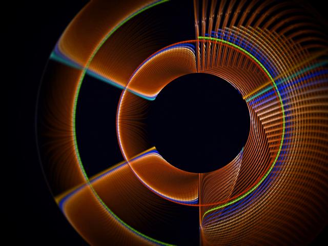 Обои Коричневый фрактальный рисунок с радужными линиями на черном фоне