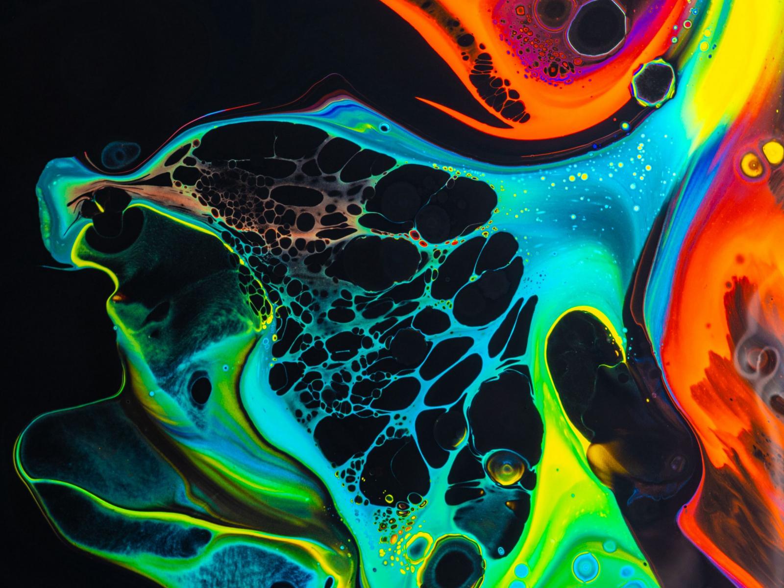 Обои Разводы разноцветной краски на черном фоне