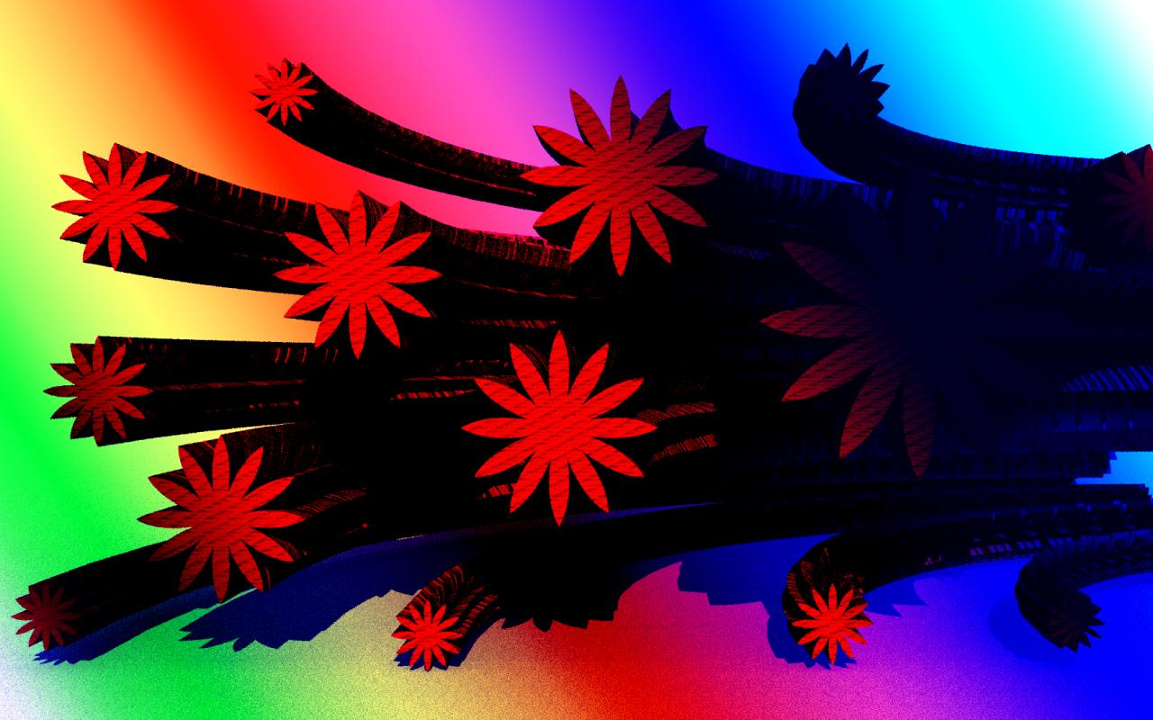 Обои Красные цветы на разноцветном фоне, 3д графика