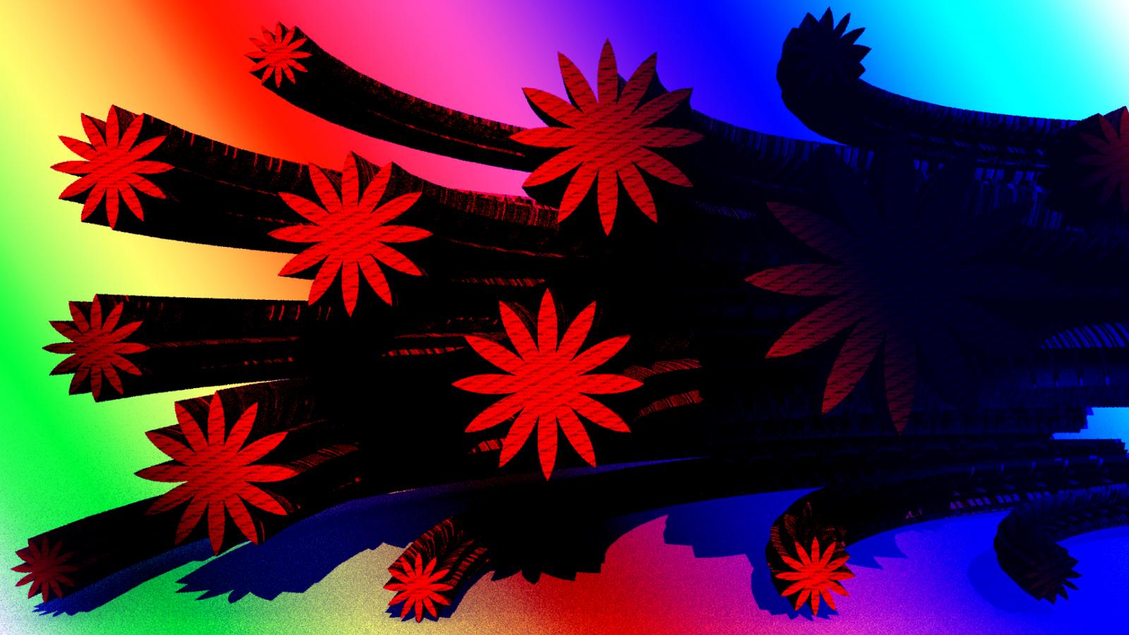 Обои Красные цветы на разноцветном фоне, 3д графика