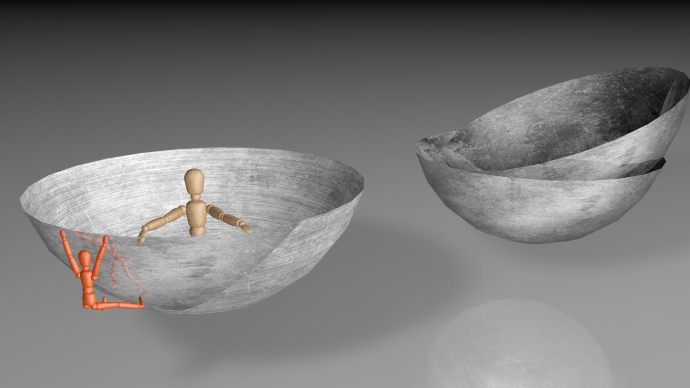 Обои Роботы в серых чашах на сером фоне 3д графика
