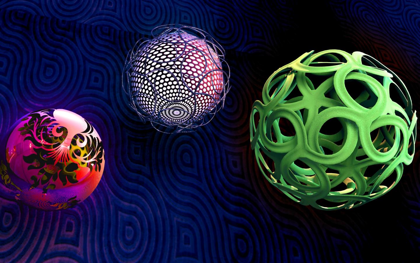 Обои Необычные фигурные шары на синем фоне